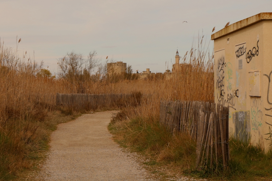 Sur cette photo, nous retrouvons l’idée du mystère par le lieu, un chemin désert et se courbant vers la droite sans nous donner d’information sur sa destinée puisqu’il s’enfouit dans les roseaux. C’est un chemin qui semble bien entretenu et nous parle d’humain par cet entretien, les tags sur le bâtiment de droite et la civilisation au fond de l’image avec la vue sur la tour de Constance. Le chemin semble nous y conduire (à la tour de constance) , la voix entre la modernité urbaine et l’histoire ancienne se font face. Cette photo raconte bien un mystère et s’il se trouve au niveau du face à face entre ces deux époques, c’est bien grâce au fait que le photographe intègre le chemin dans la composition que nous pouvons nous impliquer et ressentir ce mystère comme quelque univers entre deux époques qui dialogue en dehors de la civilisation ! Saura-t-on ce qui se dit ?